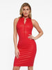Nora | Shapewear Skulpterende Midikjole i Imitert Skinn med Glidelås foran